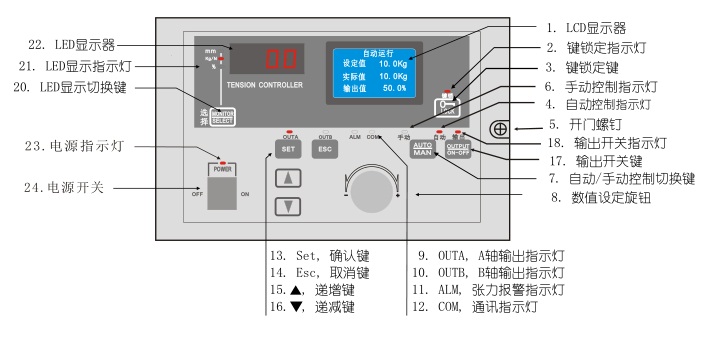 3、全數字化設計,無可調電位器,張力標定過程簡單.張力測量精確、錘定、可靠。