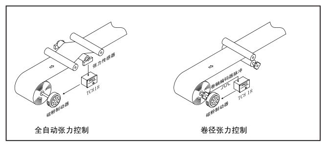 KTC83全自動與卷徑張力控制器8可以設置為全自動張力控制器或卷徑張力控制器,當功能選擇[28] m設置允自動張力控制時,KTC838為全自動張力控制器,需安裝張力傳感器組成閉壞控制系統(tǒng)。當功能選擇[28]設置為卷徑張力控制時,KTC838為卷徑張力控制器,只需安裝接近開關/編碼器對料卷半徑進行測S,控制器根據卷徑進行張力控制。